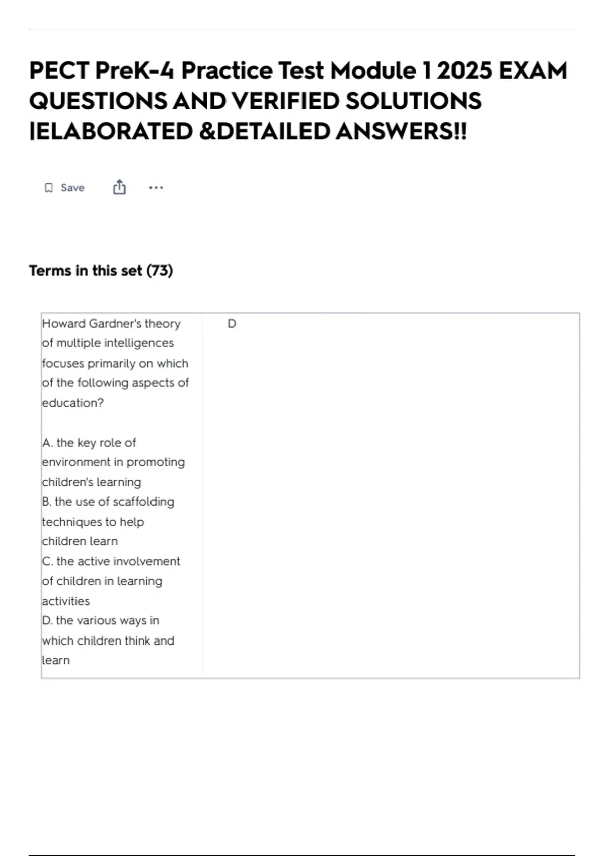 PECT PreK-4 Practice Test Module 1 2025 EXAM