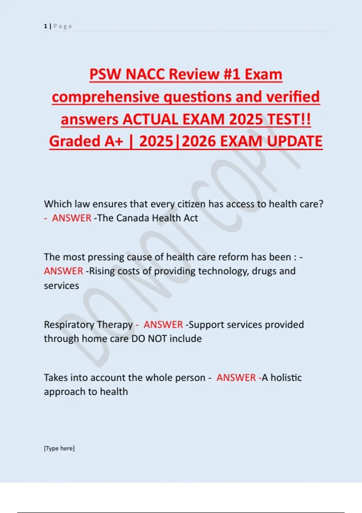 PSW NACC Review #1 Exam