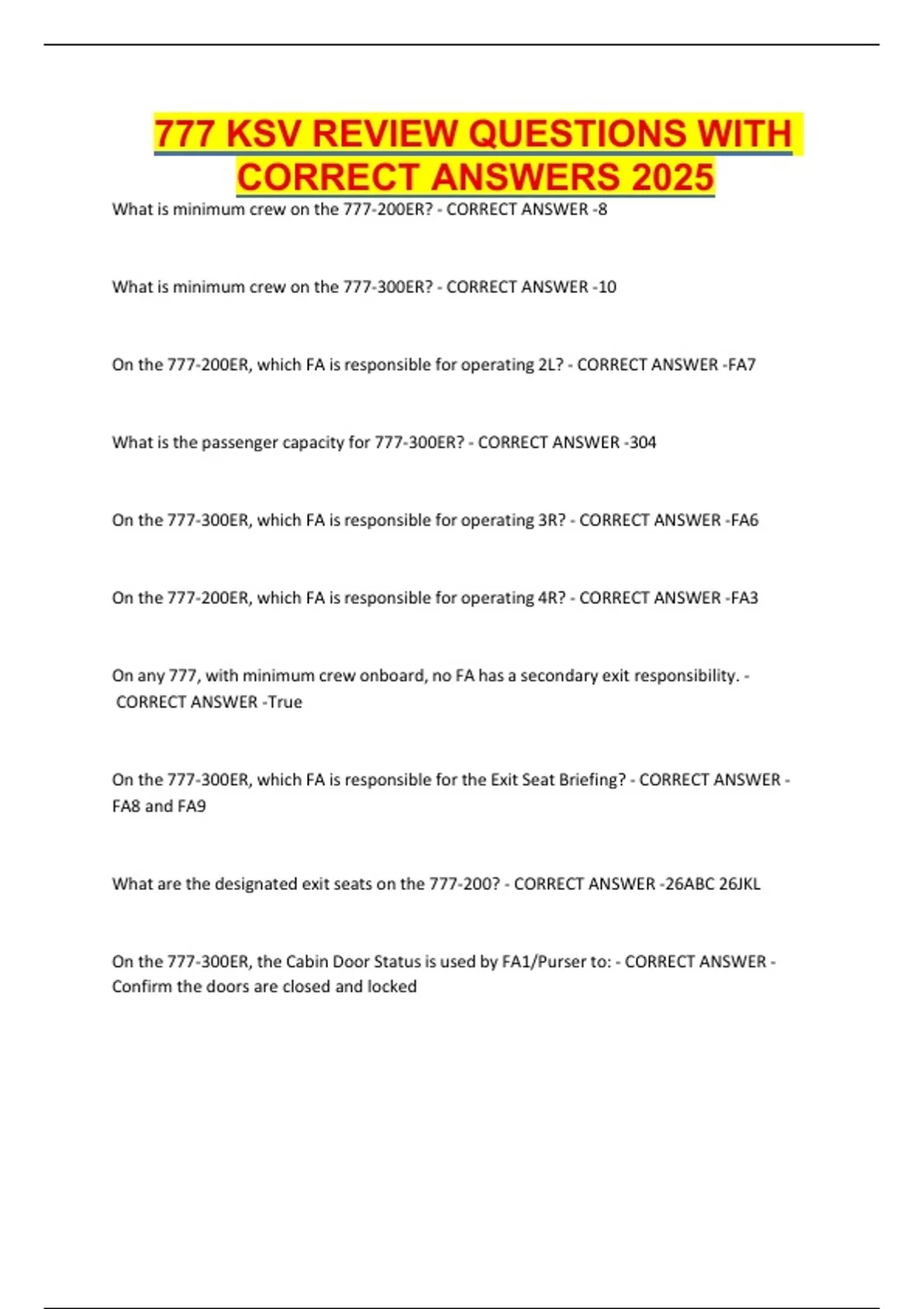 777 KSV REVIEW QUESTIONS WITH
