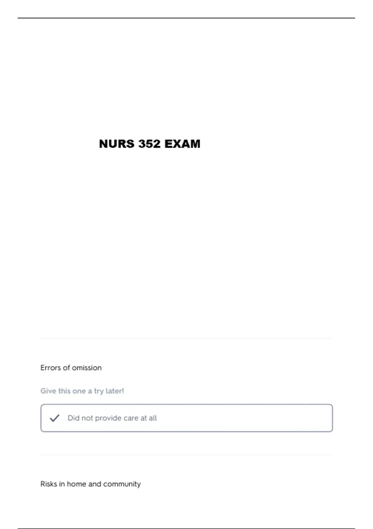 NUR 352 EXAM 2 SAFETY QUESTIONS AND VERIFIED ANSWERS