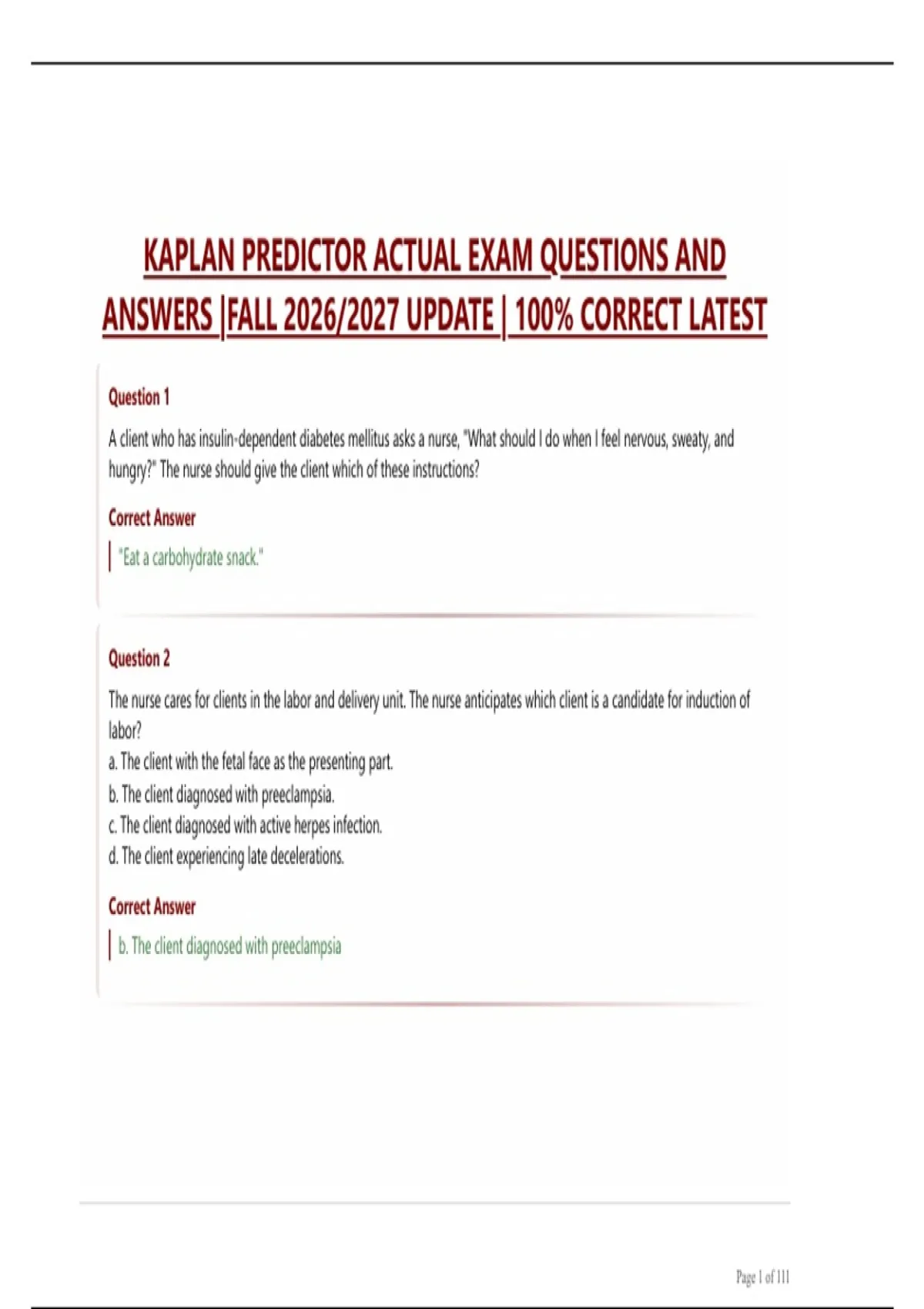KAPLAN PREDICTOR ACTUAL EXAM QUESTIONS AND ANSWERS |FALL 2026/2027 UPDATE | 100% CORRECT LATEST