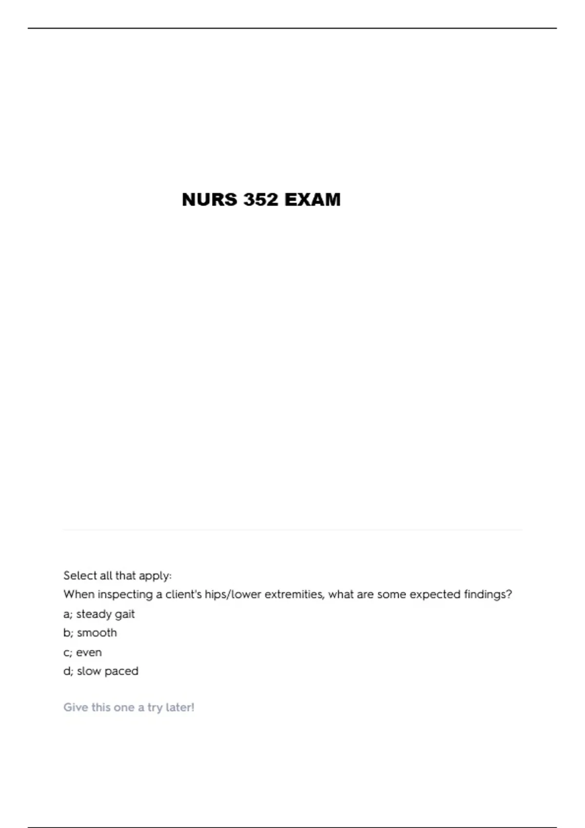 NUR 352 HEALTH ASSESSMENT HAIR_SKIN_NAILS_MUSCULOSKELETAL QUESTIONS AND VERIFIED ANSWERS