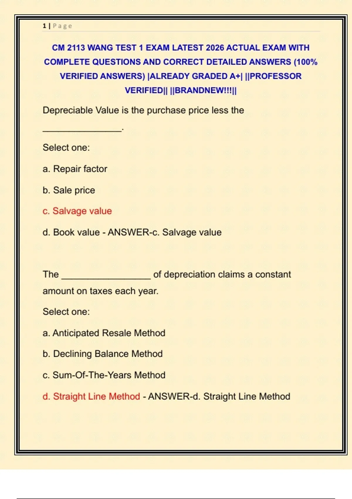 d. Straight Line Method - ANSWER-d. Straight Line Method