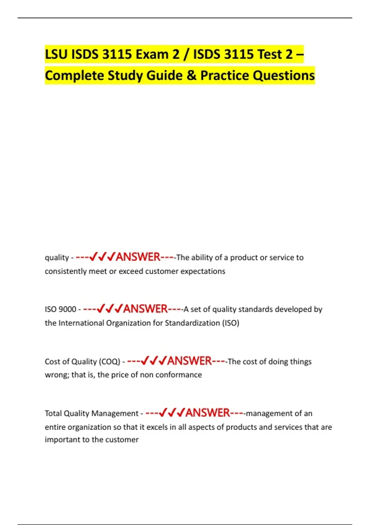 quality - ---✔✔✔ANSWER----The ability of a product or service to