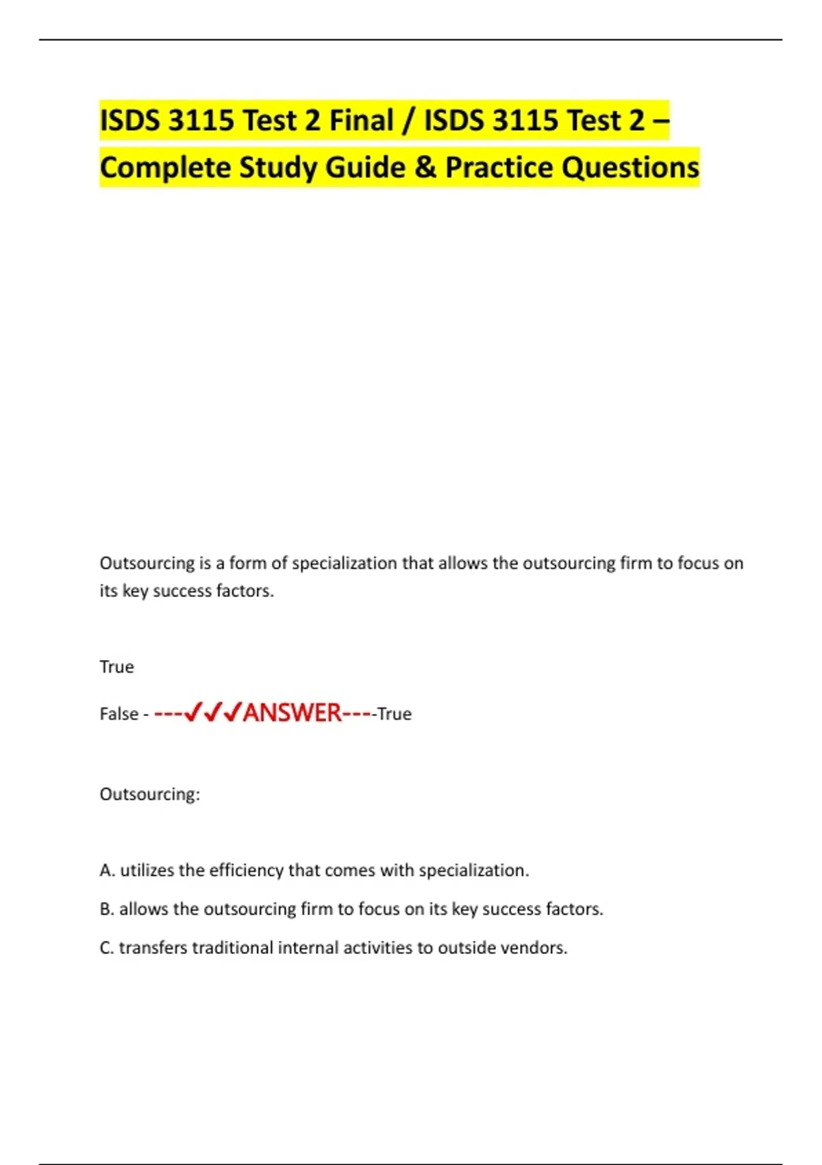 E. None of the above is true of outsourcing. - ---✔✔✔ANSWER----D. All of