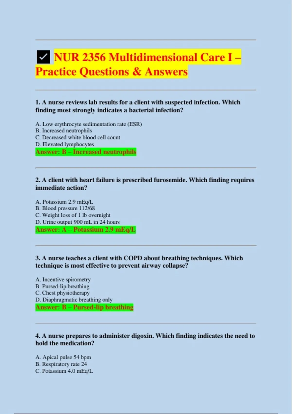 1. A nurse reviews lab results for a client with suspected infection. Which