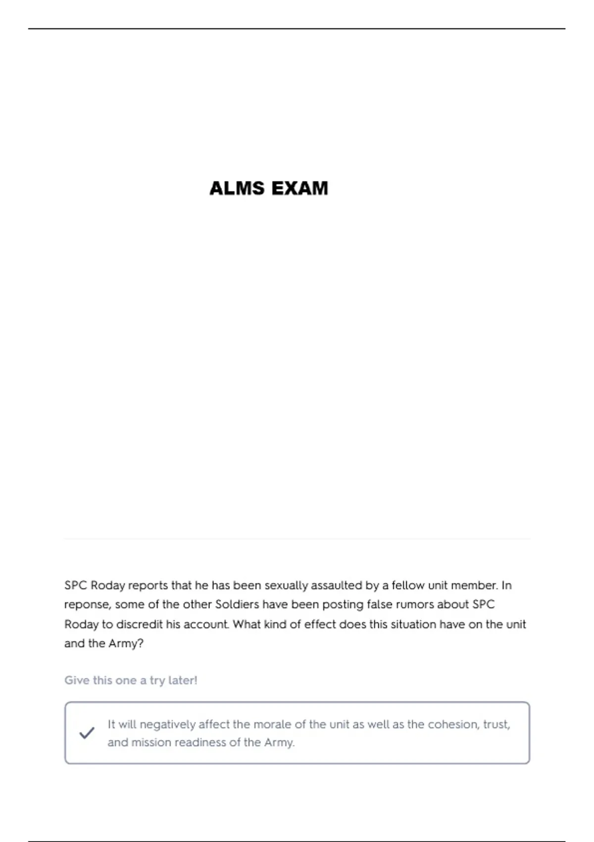ALMS SHARP PRE-TEST_POST-TEST QUESTIONS AND VERIFIED ANSWERS