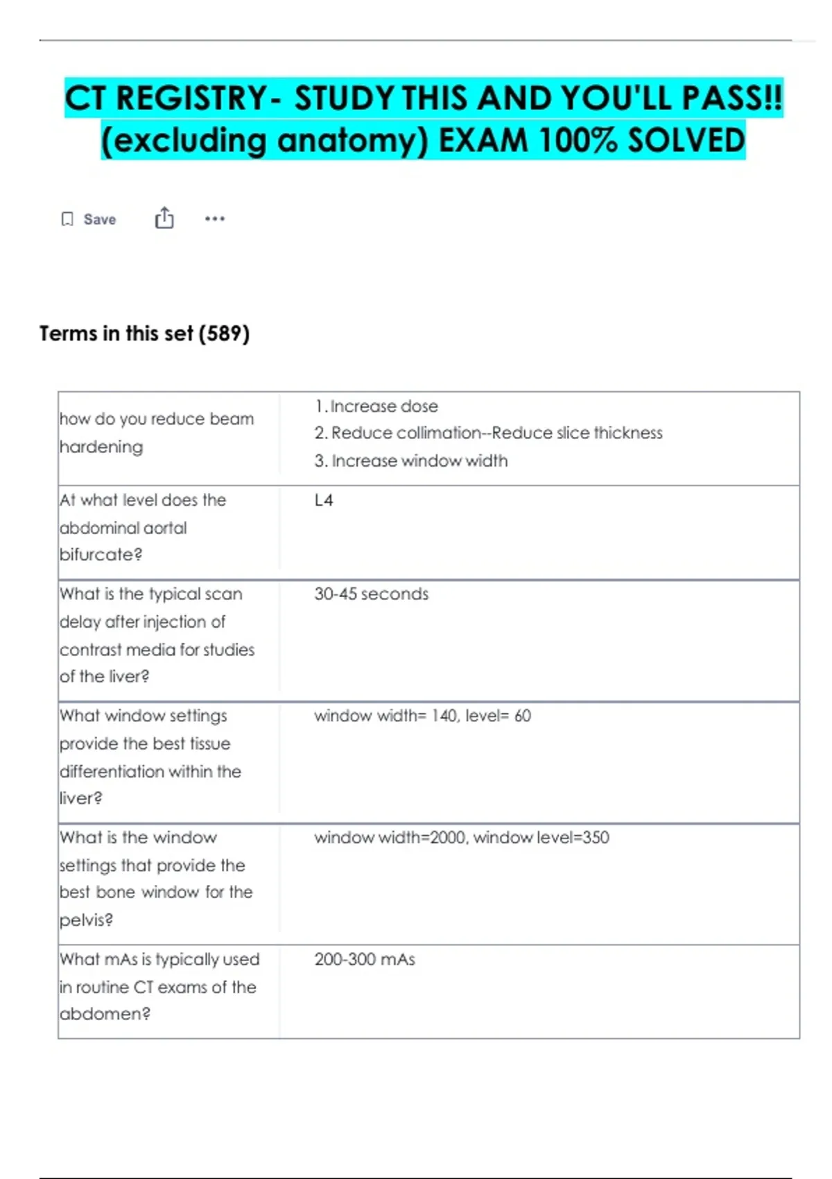 CT REGISTRY- STUDY THIS AND YOU'LL PASS!! (excluding anatomy) EXAM 100% SOLVED