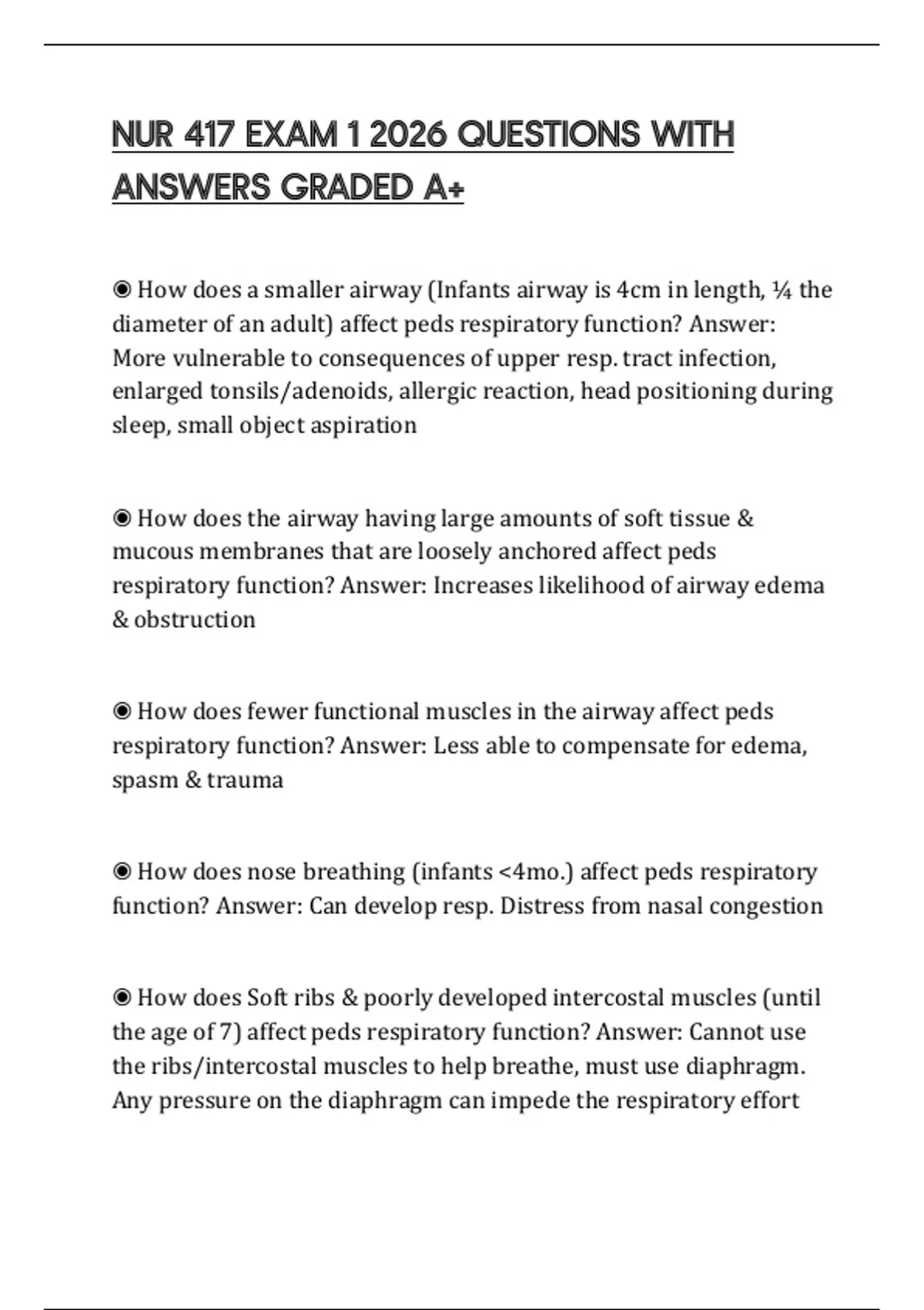 NUR 417 EXAM 1 2026 QUESTIONS WITH ANSWERS GRADED A+
