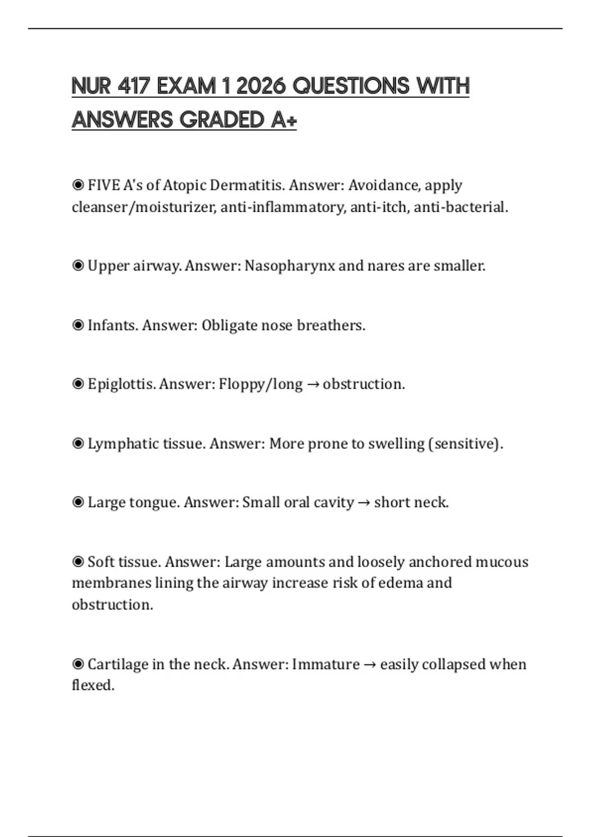 NUR 417 EXAM 1 2026 QUESTIONS WITH ANSWERS GRADED A+