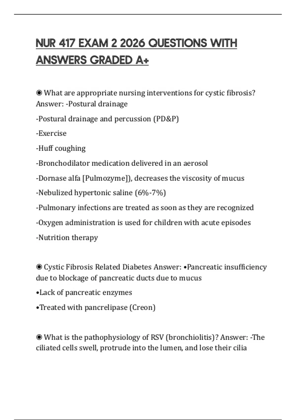 NUR 417 EXAM 2 2026 QUESTIONS WITH