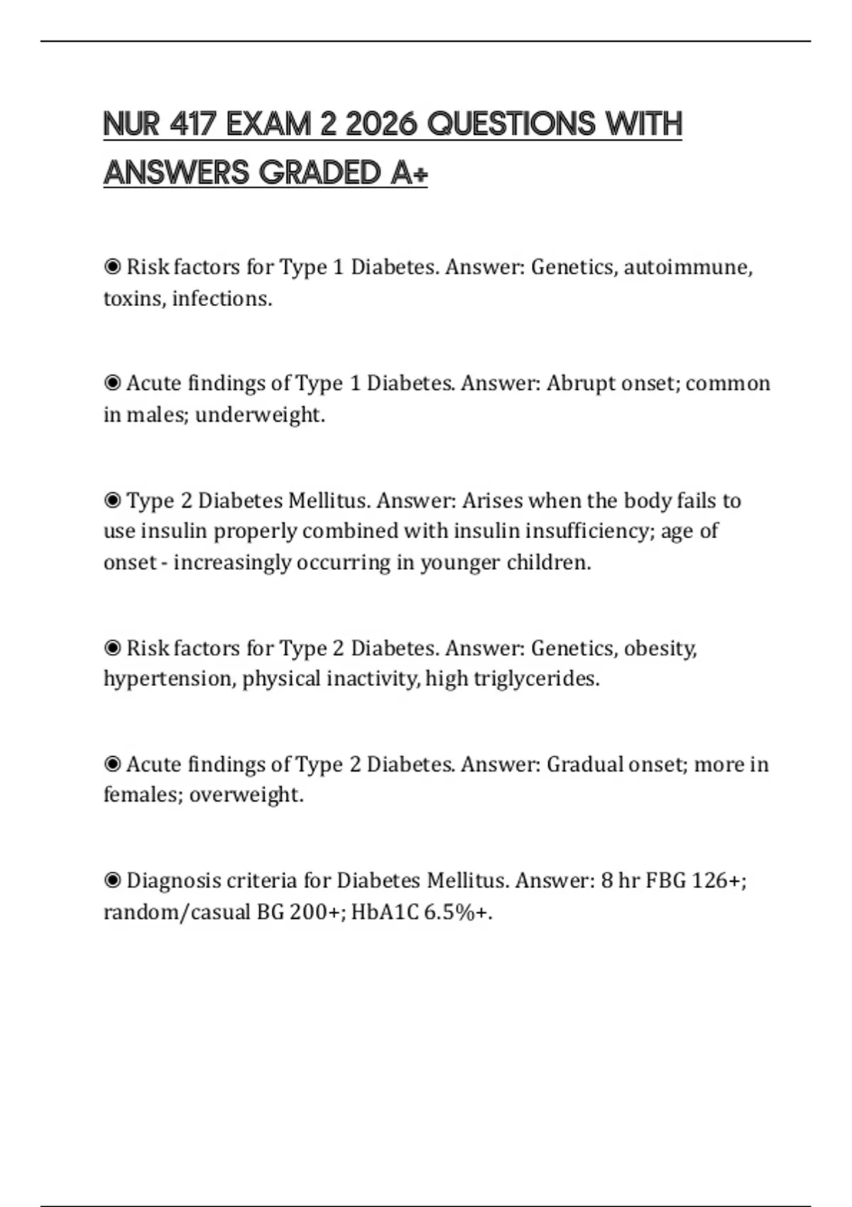 ◉ Assessment findings for Type 1 Diabetes. Answer: Characterized