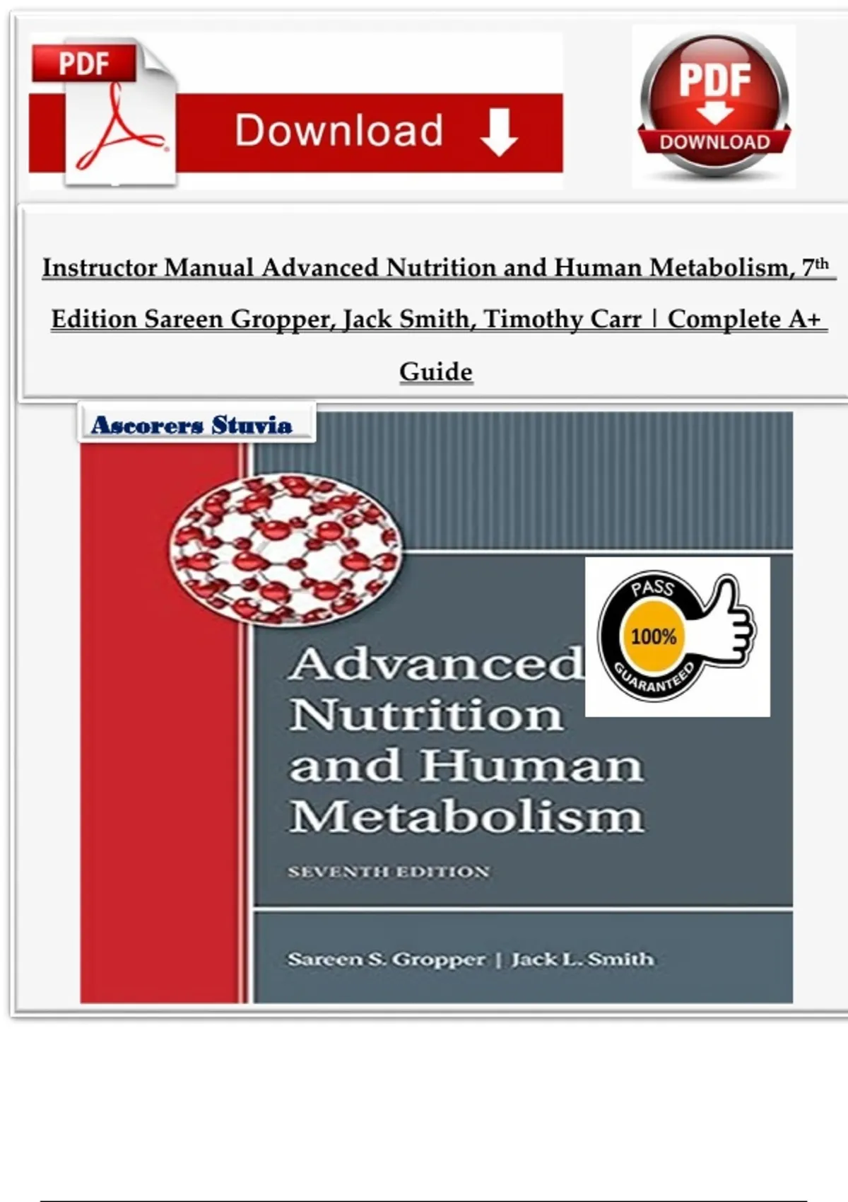 Instructor Manual Advanced Nutrition and Human Metabolism, 7th Edition Sareen Gropper, Jack Smith, Timothy Carr | Complete A+ Guide - Ready Pdf File For Download