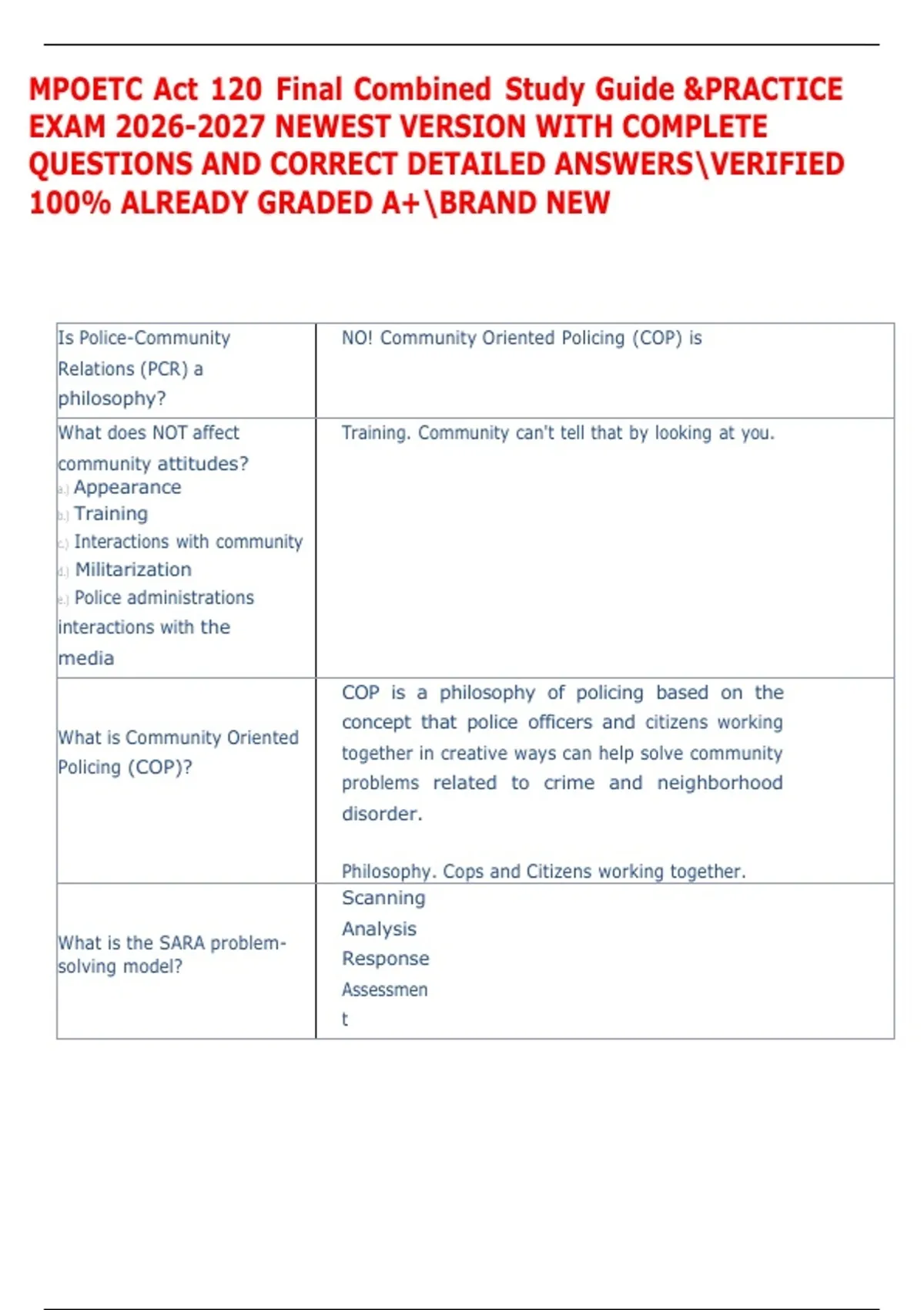 Policing (COP) Police- involves citizens and has dept wide involvement.