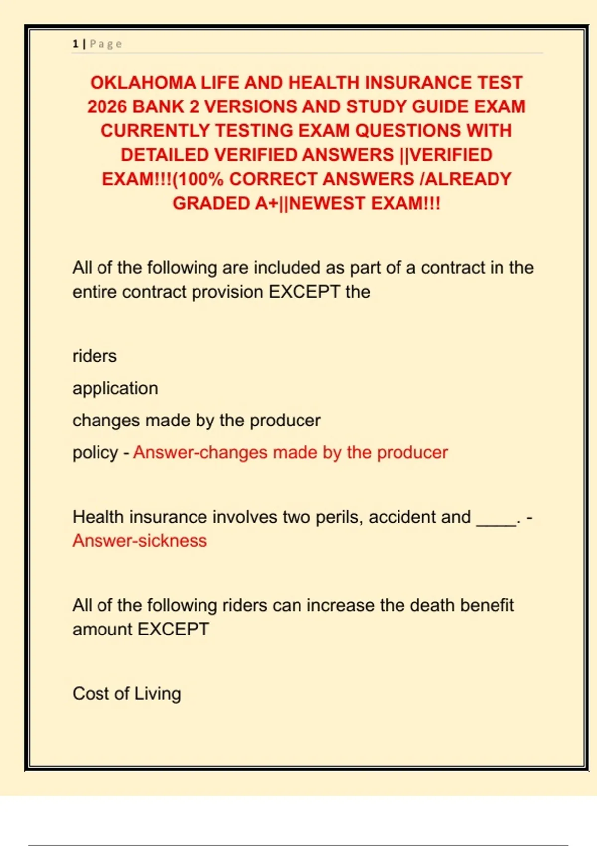 OKLAHOMA LIFE AND HEALTH INSURANCE TEST