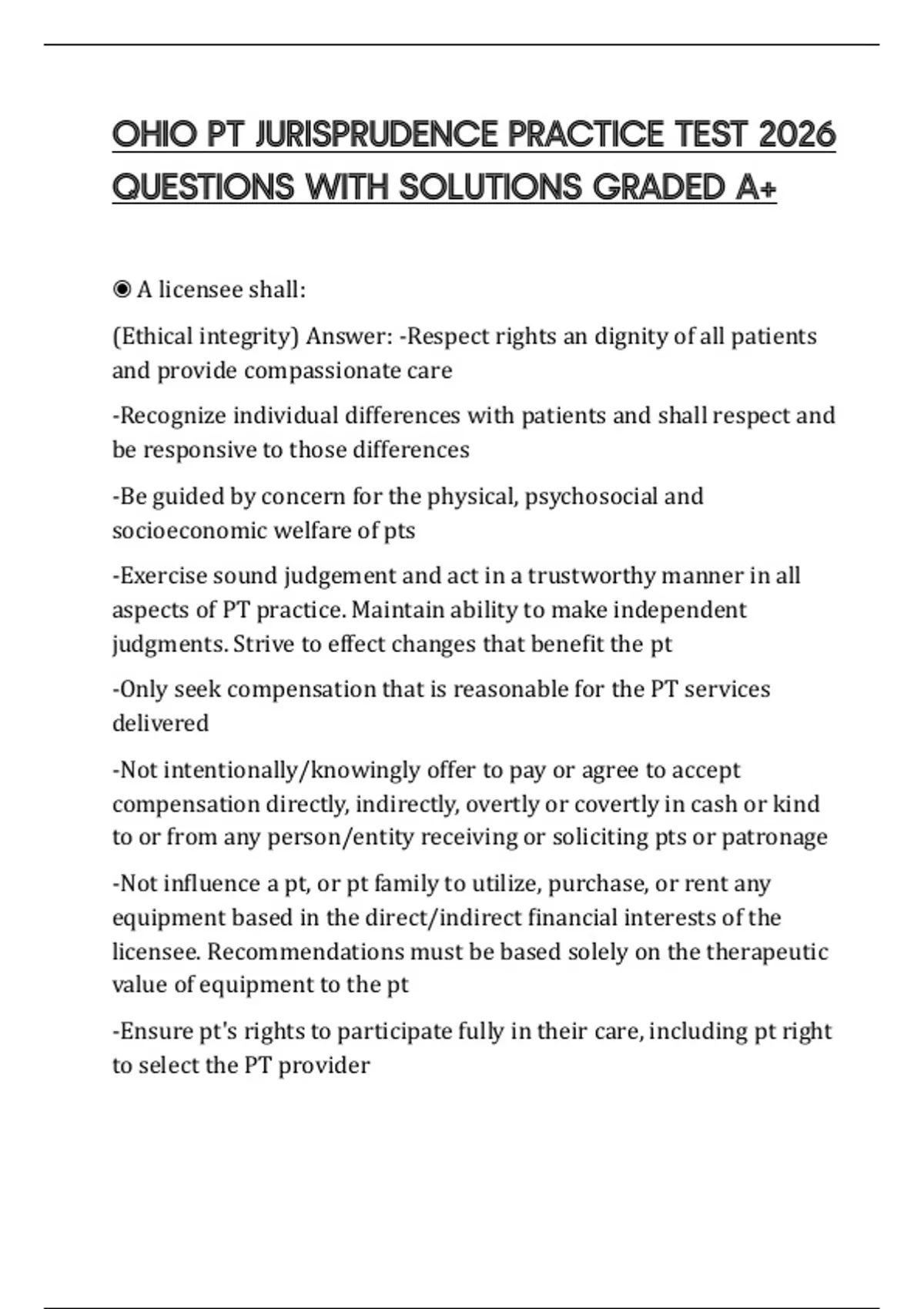 OHIO PT JURISPRUDENCE PRACTICE TEST 2026 QUESTIONS WITH SOLUTIONS GRADED A+