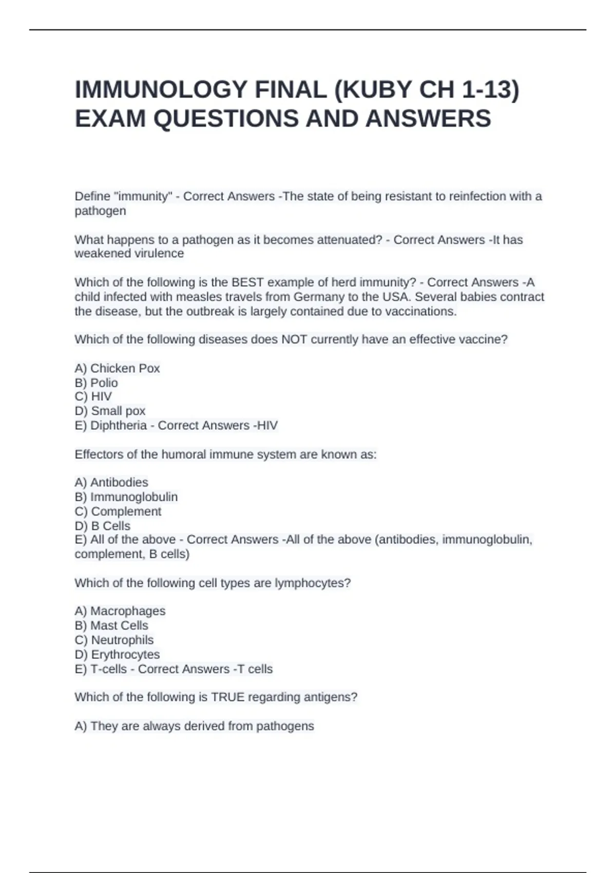 IMMUNOLOGY FINAL (KUBY CH 1-13)