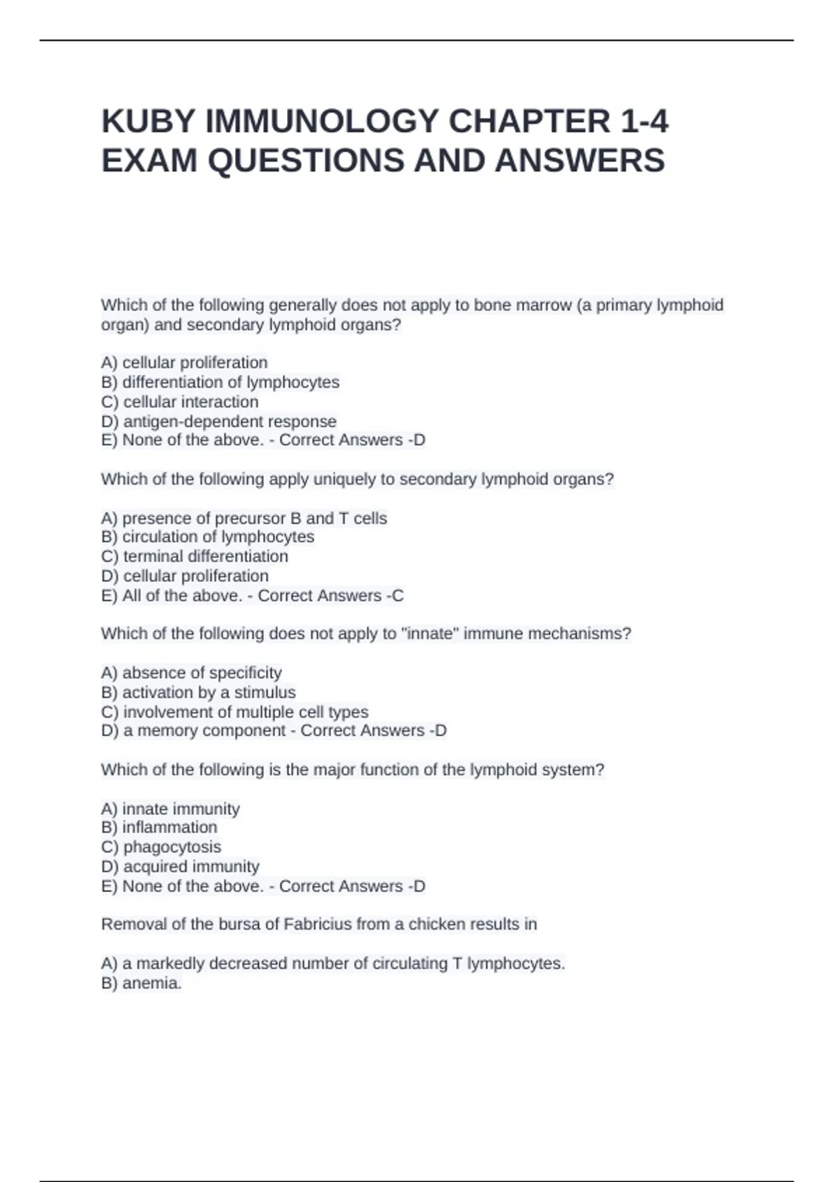 E) are the sites of NK-cell differentiation. - Correct Answers -D