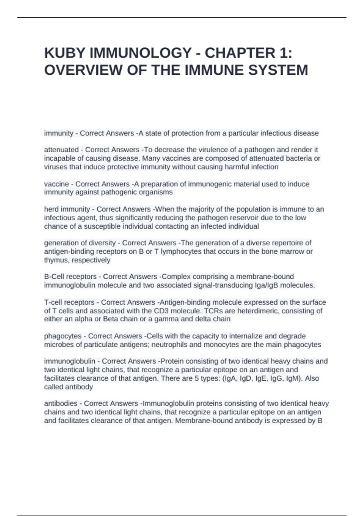 KUBY IMMUNOLOGY - CHAPTER 1: