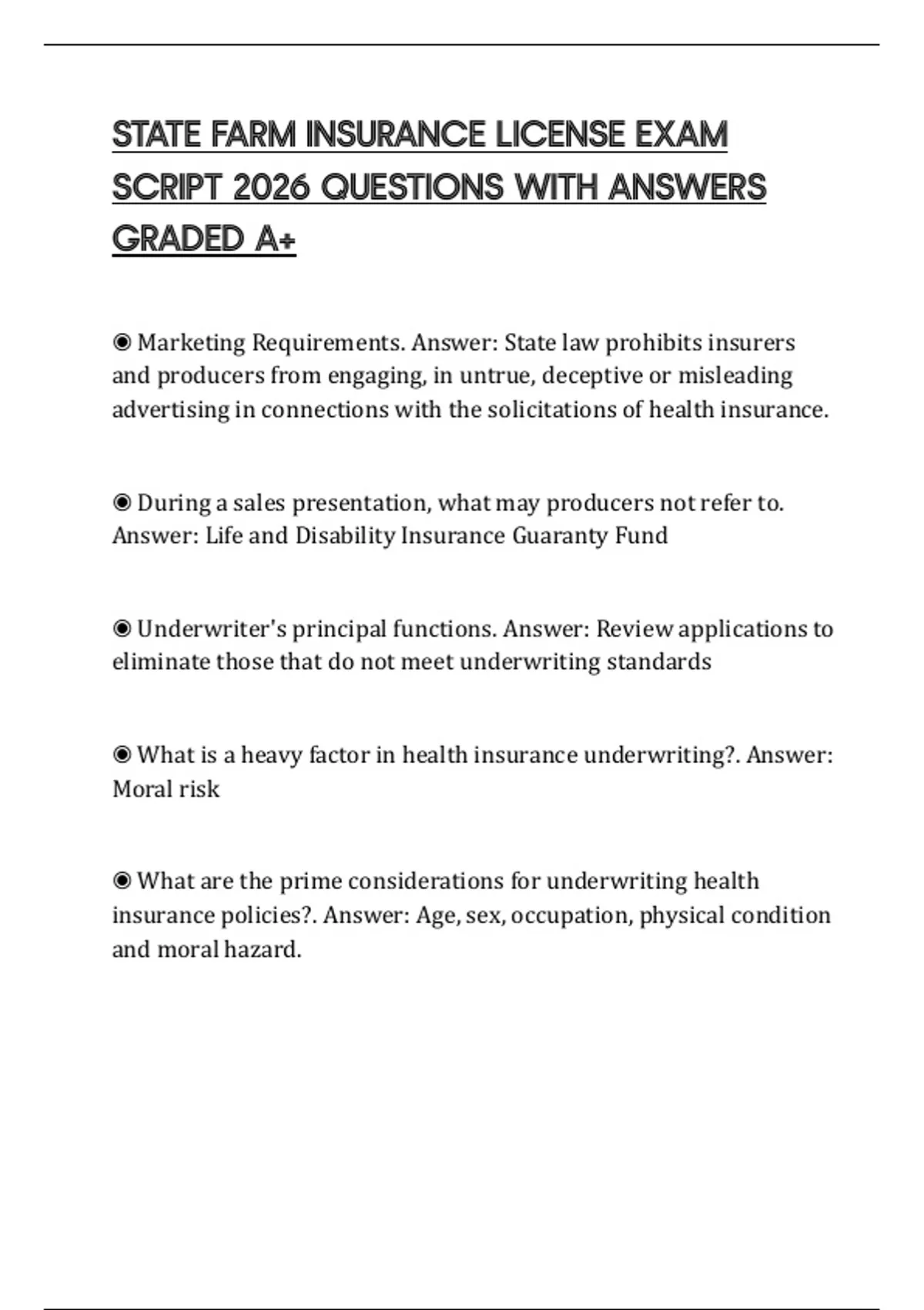 ◉ Marketing Requirements. Answer: State law prohibits insurers