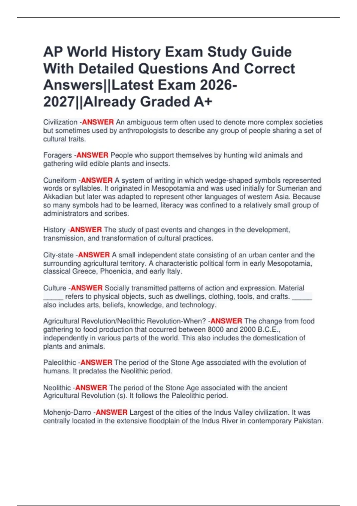Neolithic -ANSWER The period of the Stone Age associated with the ancient