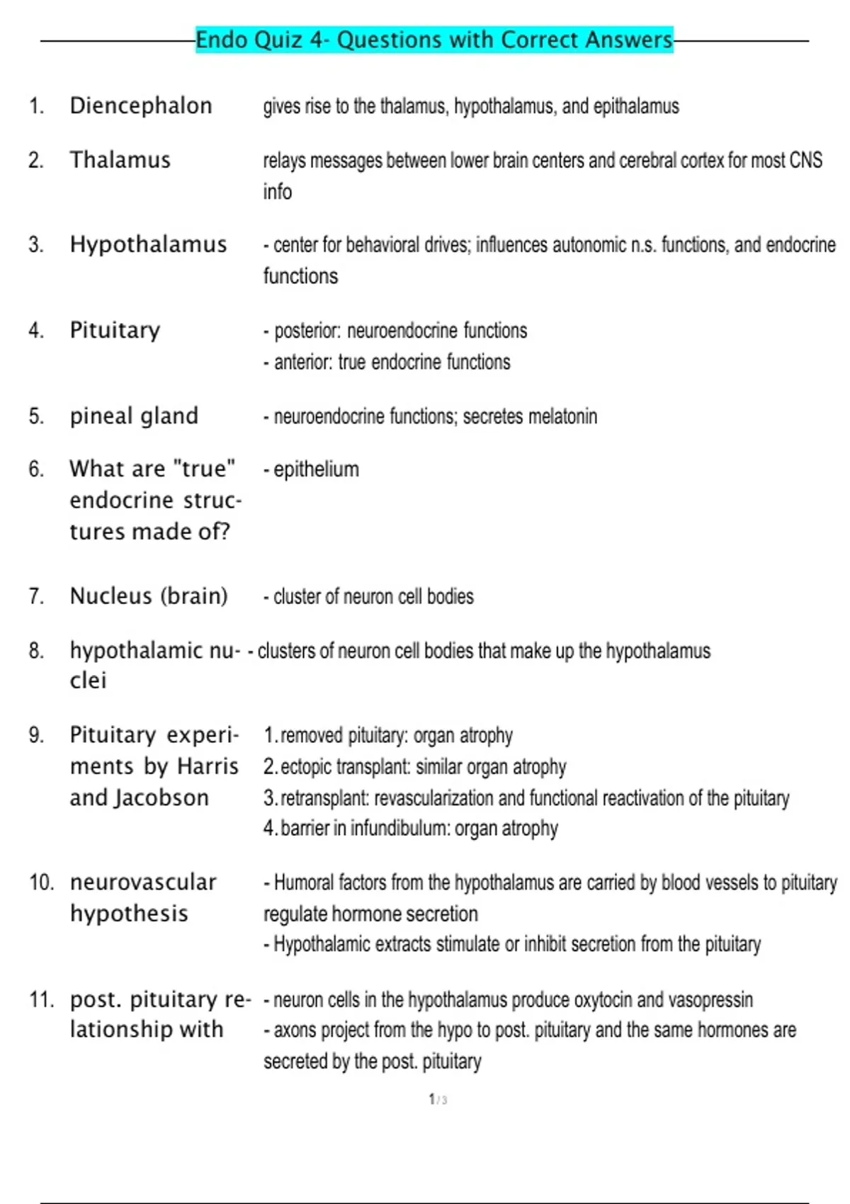Endo Quiz 4- Questions with Correct Answers