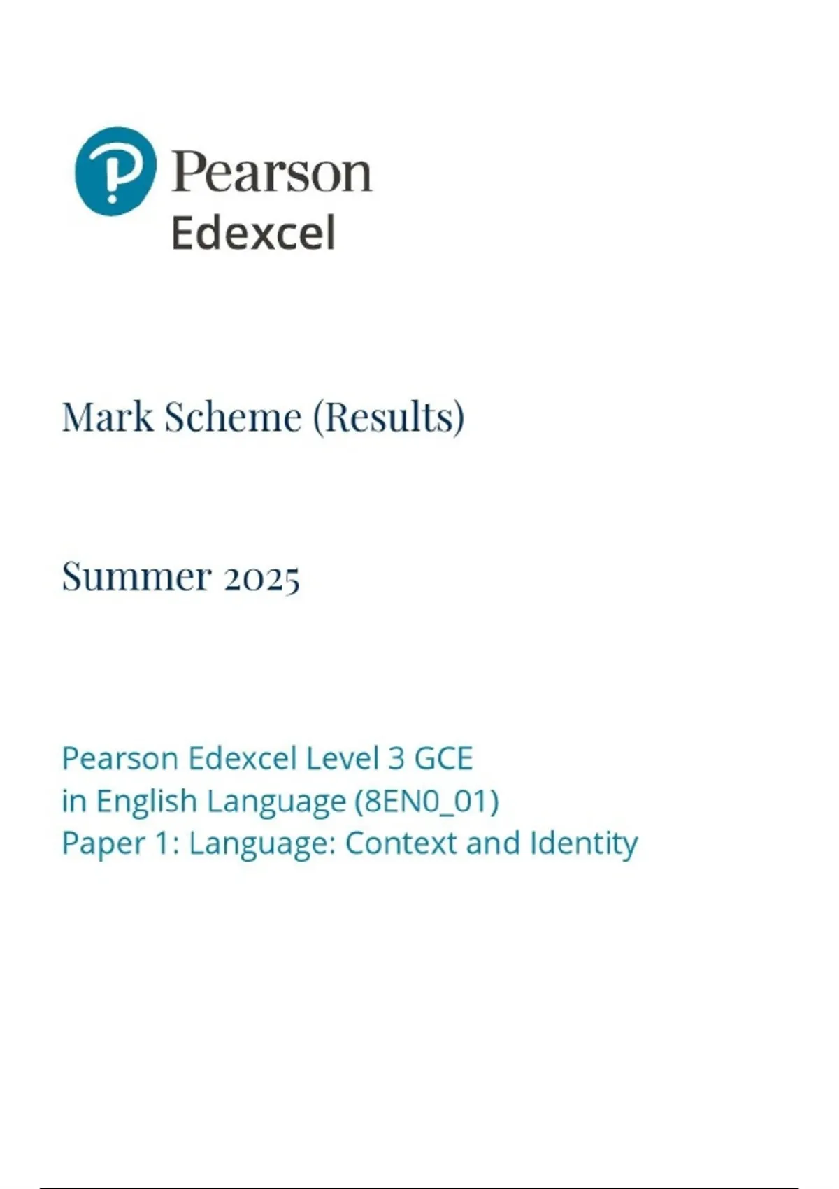 Edexcel As Level English Language 2025 Paper 1 Mark Scheme