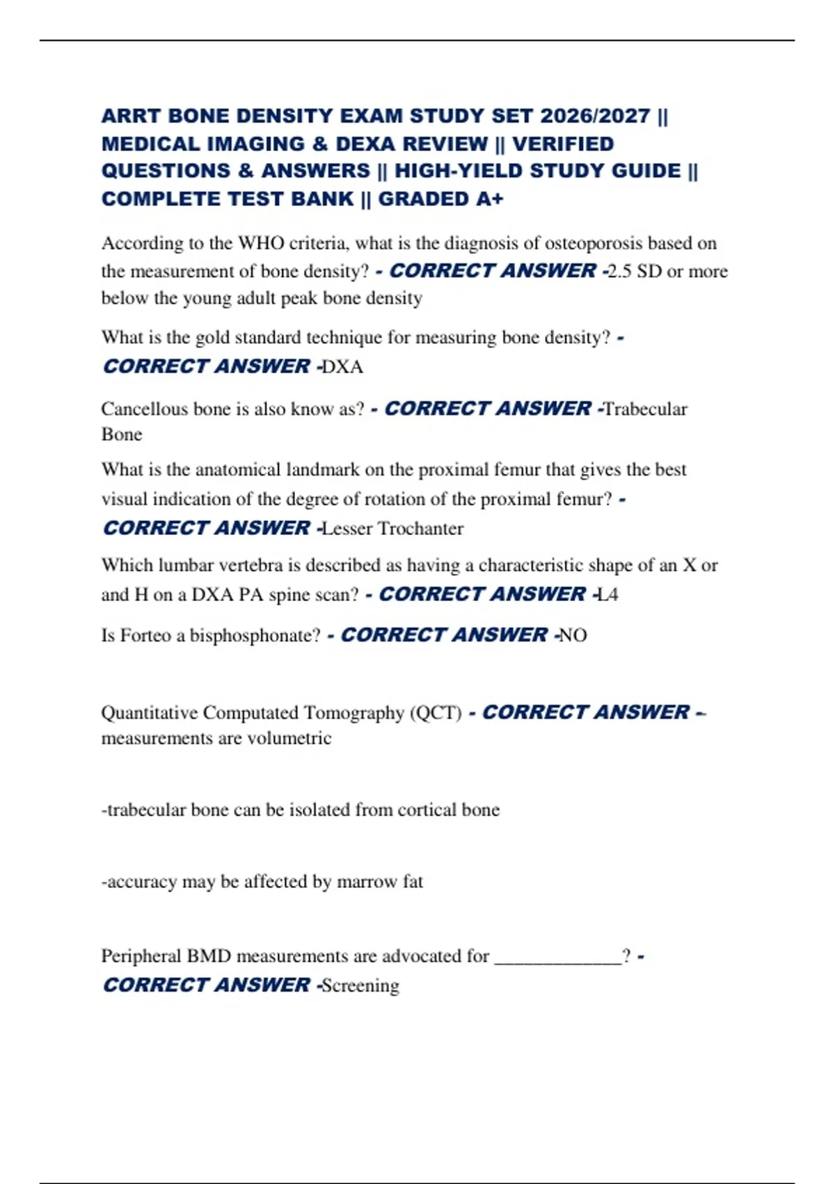 Quantitative Computated Tomography (QCT) - CORRECT ANSWER --