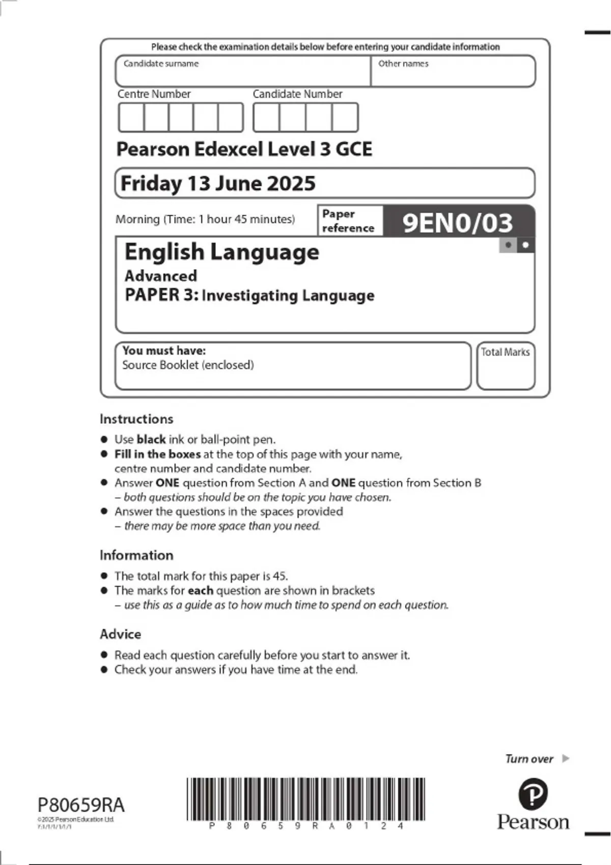 Edexcel A Level English Language 2025 Paper 3 Question Paper