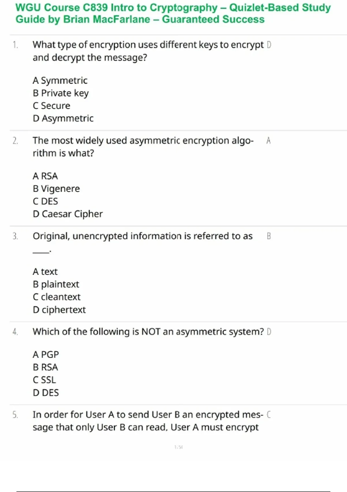 WGU Course C839 Intro to Cryptography – Quizlet-Based Study Guide by Brian MacFarlane – Guaranteed Success