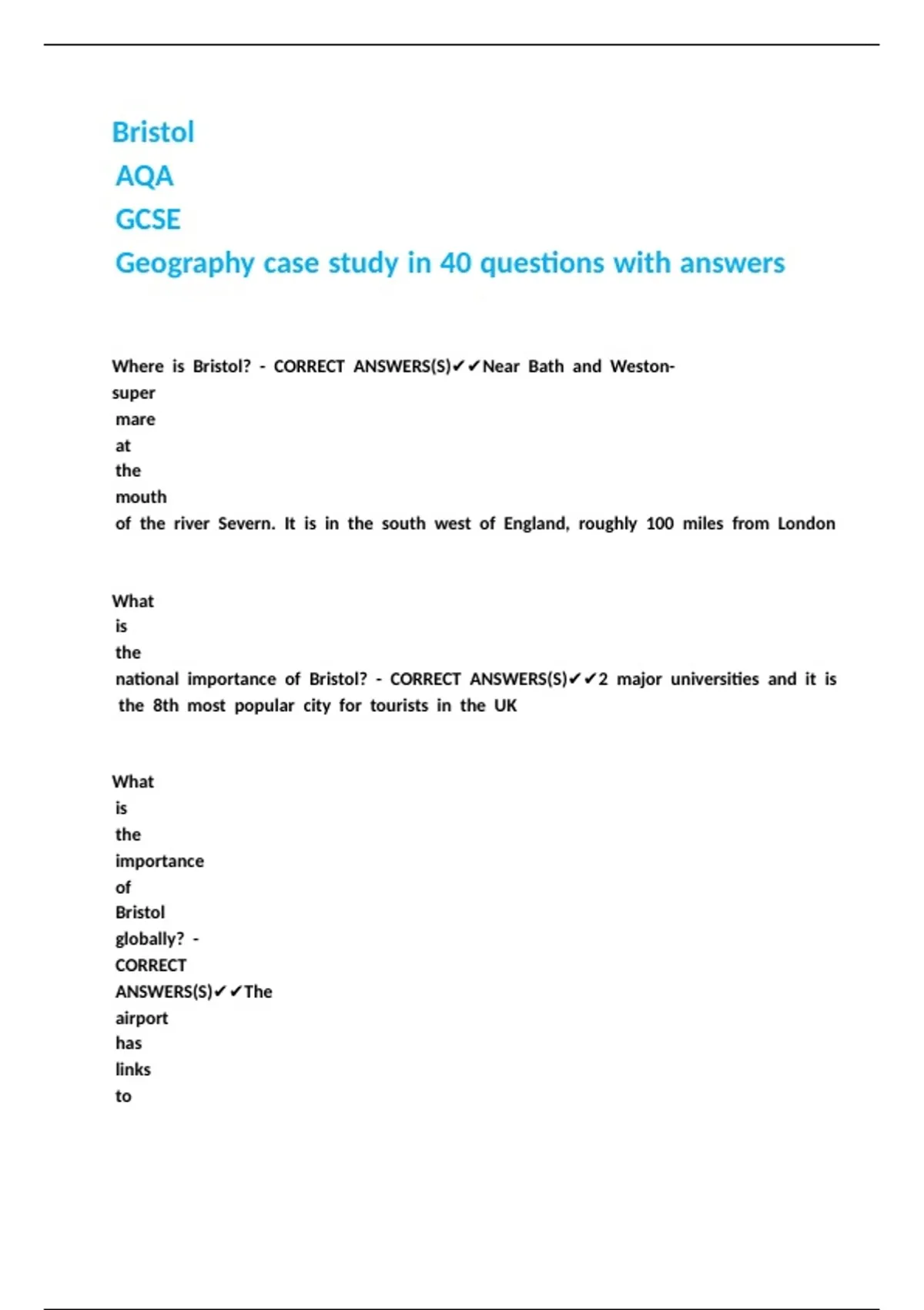 Geography case study in 40 questions with answers