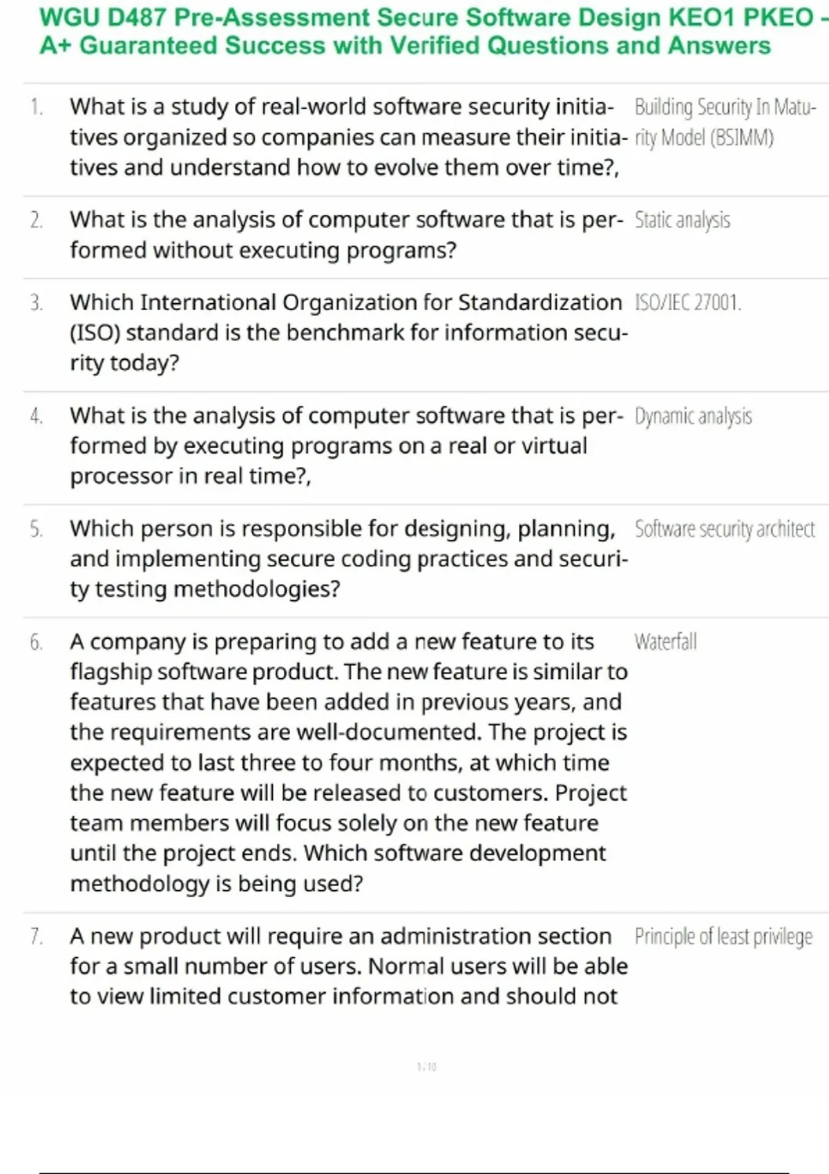 WGU D487 Pre-Assessment Secure Software Design KEO1 PKEO – Guaranteed Success with Verified Questions and Answers