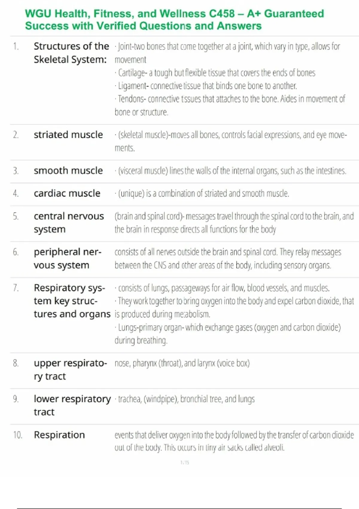 This WGU Health, Fitness and Wellness C458 study guide is designed to help students develop a comprehensive understanding of personal wellness and fitness principles. It includes verified questions and clearly explained answers covering physical fitness, nutrition, mental and emotional health, stress management, disease prevention, behavior change, and wellness planning. Carefully aligned with WGU C458 course competencies, this guide supports focused study and exam readiness. Ideal for students seeking practical, real-world wellness knowledge, it strengthens health literacy and provides a reliable pathway to guaranteed success and A+-level performance.