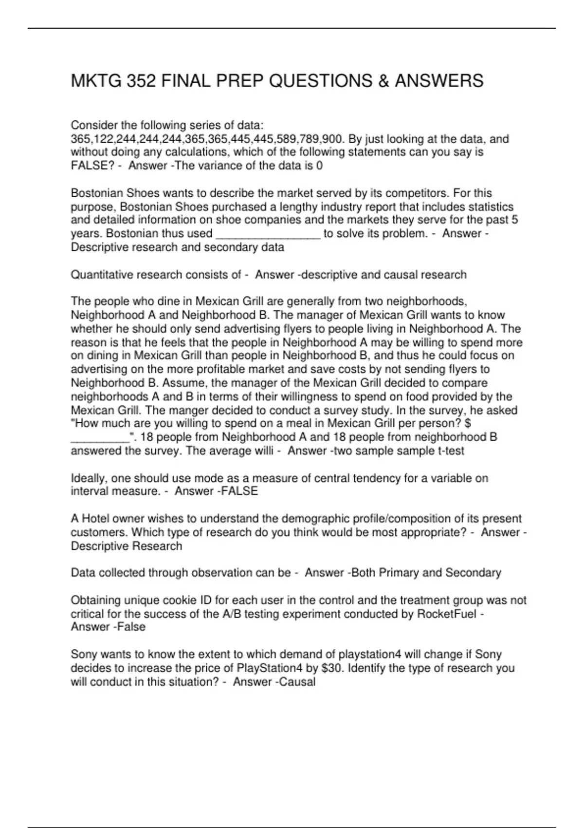 MKTG 352 FINAL PREP QUESTIONS & ANSWERS