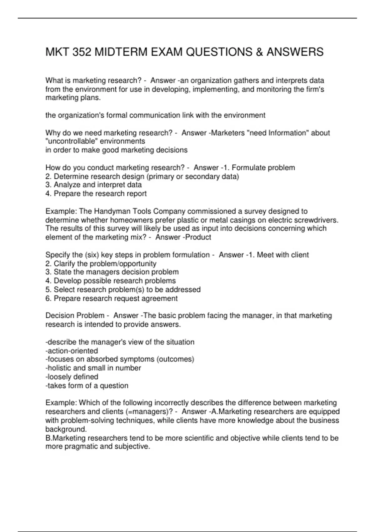 MKT 352 MIDTERM EXAM QUESTIONS & ANSWERS