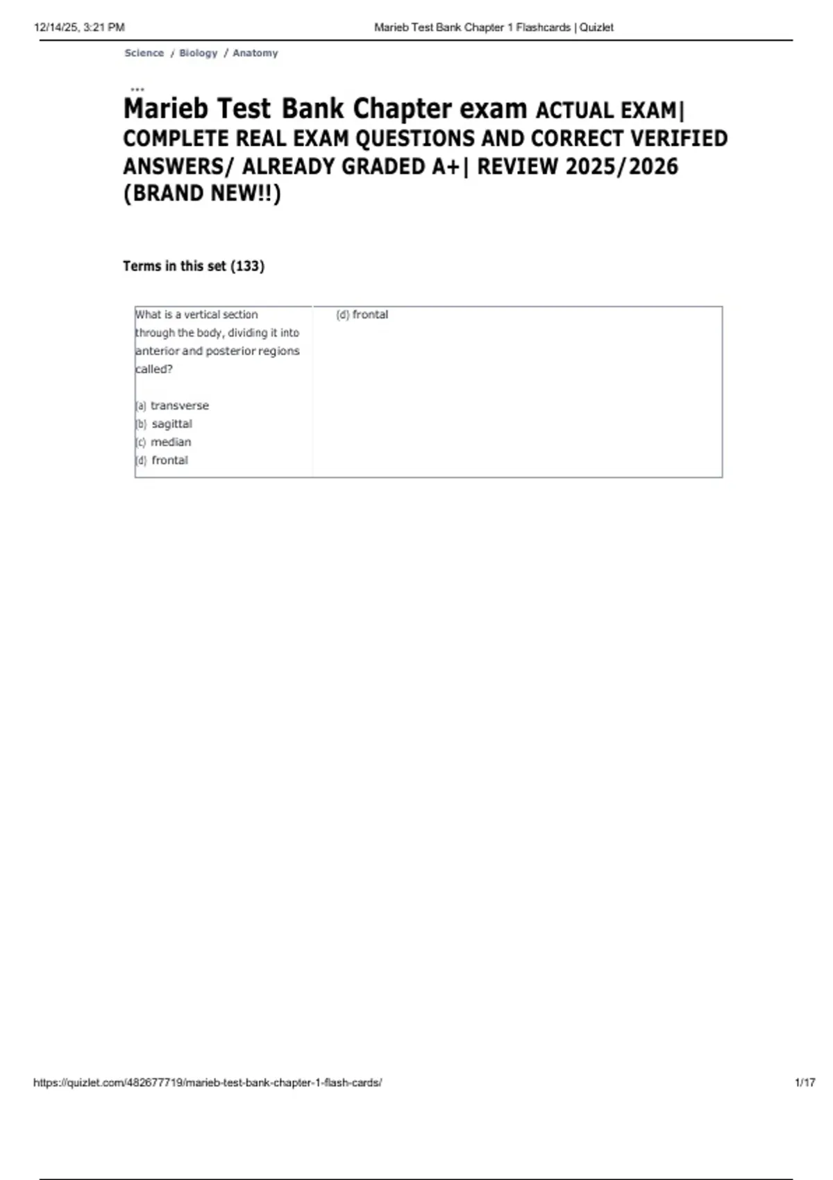 , 12/14/25, 3:21 PM Marieb Test Bank Chapter 1 Flashcards | Quizlet