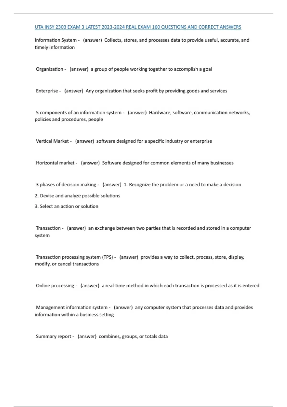 , UTA INSY 2303 EXAM 3 LATEST 2023-2024 REAL EXAM 160 QUESTIONS AND CORRECT ANSWERS
