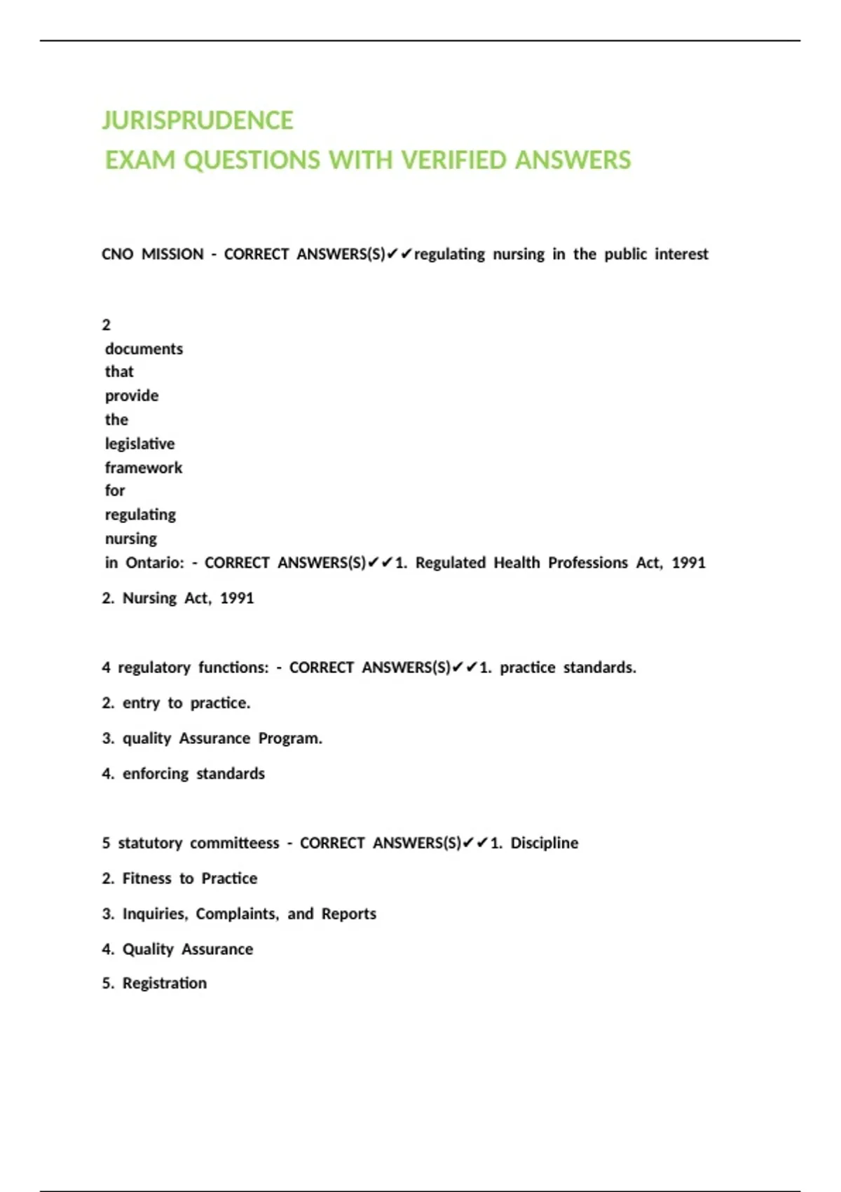 JURISPRUDENCE EXAM QUESTIONS WITH VERIFIED ANSWERS