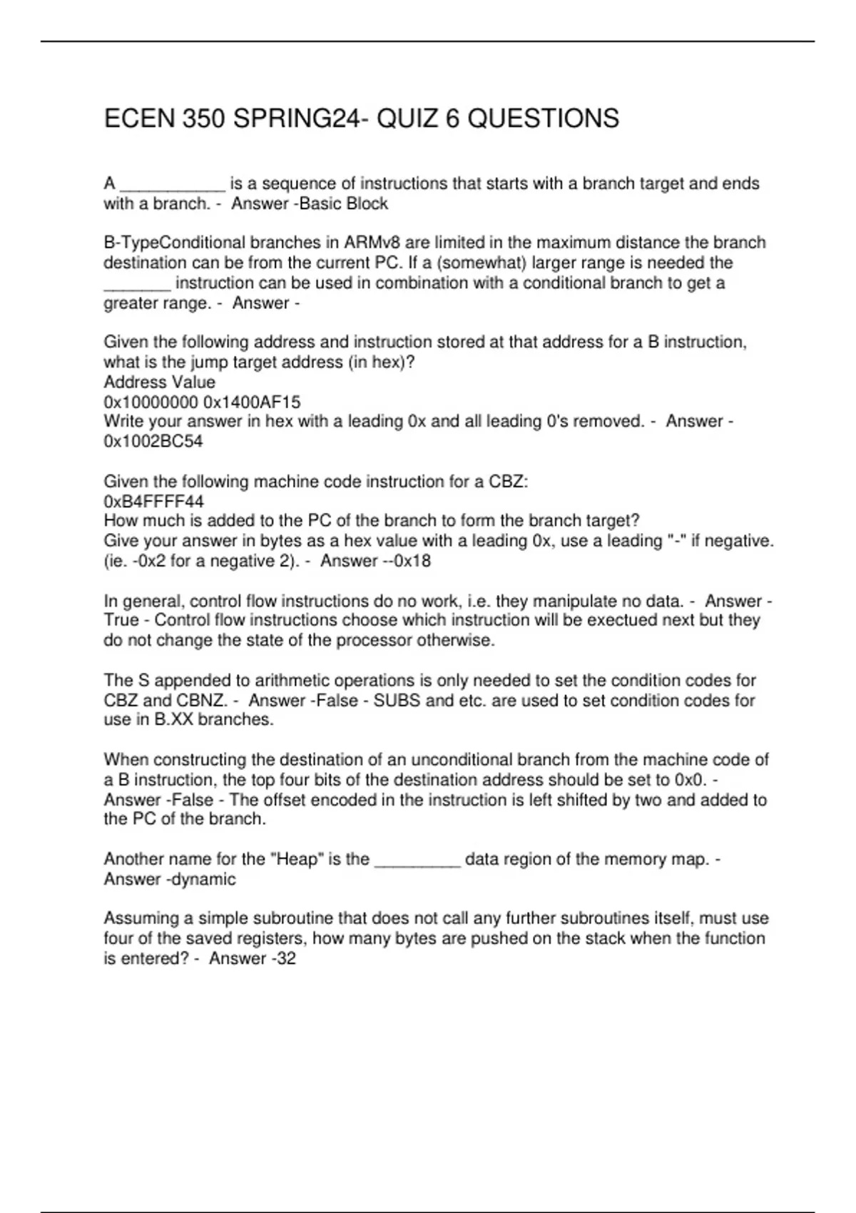 ECEN 350 SPRING24- QUIZ 6 QUESTIONS