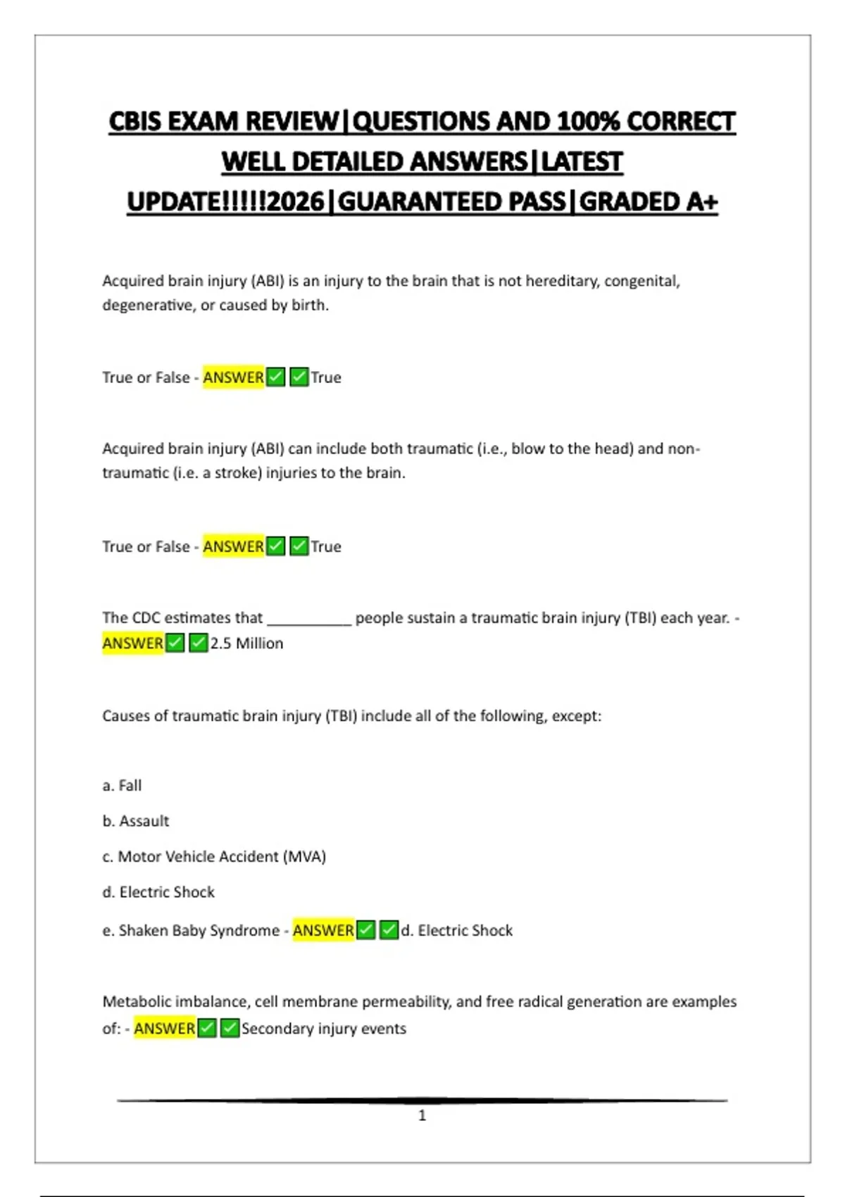 all TBI's? - ANSWER Mild TBI (mTBI)/Concussion