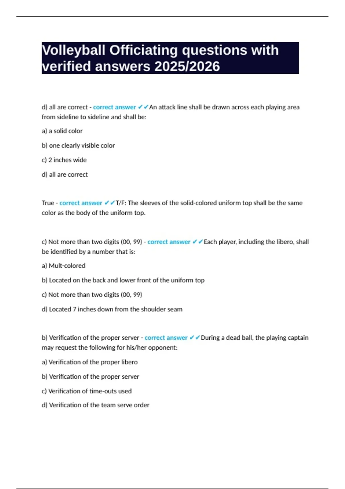 Volleyball Officiating questions with verified answers 2025/2026