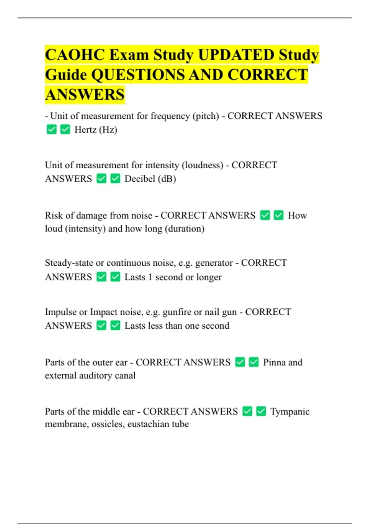 CORRECT ANSWERS Tinnitus; difficulty understanding in