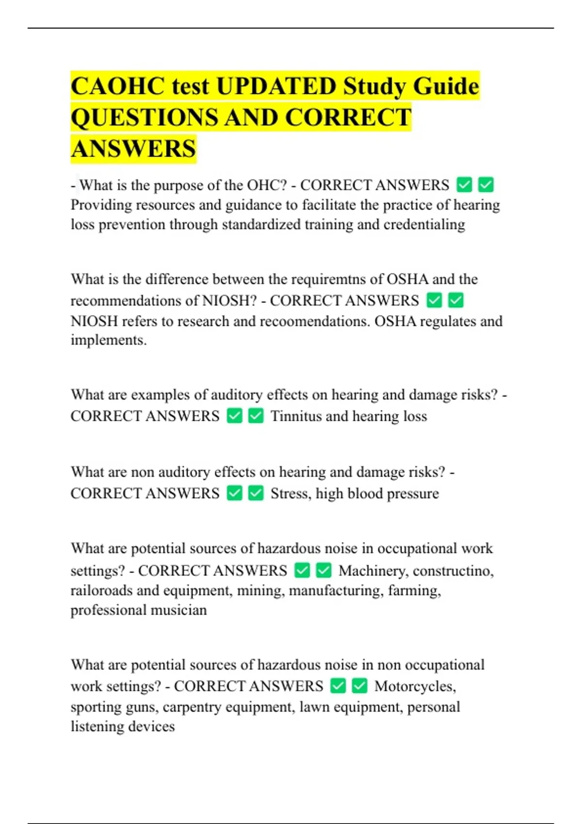 CAOHC test UPDATED Study Guide