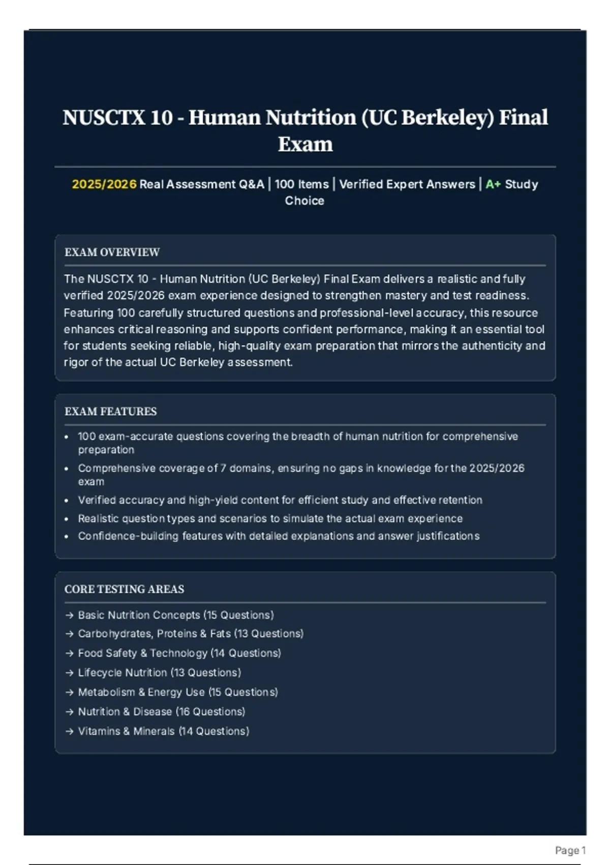 The NUSCTX 10 - Human Nutrition (UC Berkeley) Final Exam delivers a realistic and fully