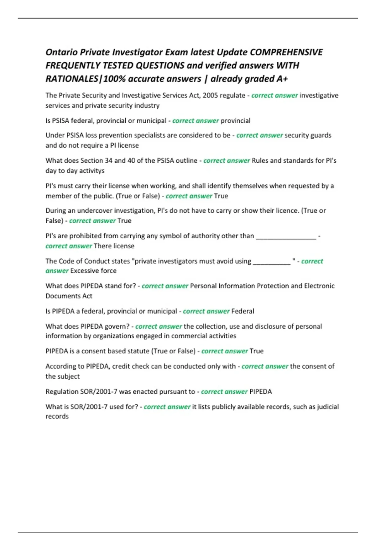 FREQUENTLY TESTED QUESTIONS and verified answers WITH