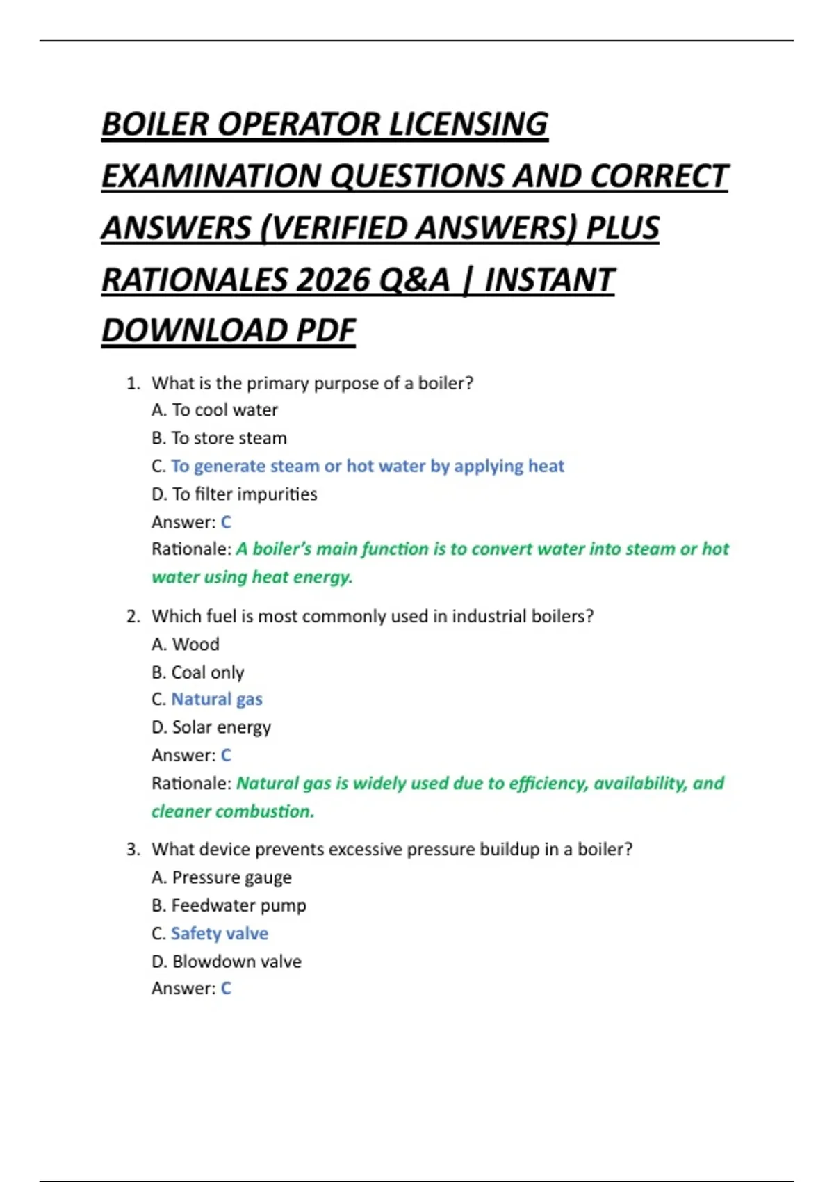 Rationale: A boiler’s main function is to convert water into steam or hot