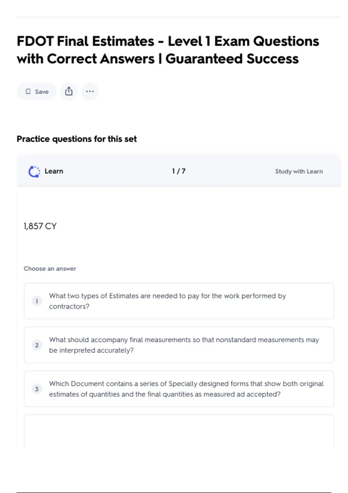 FDOT Final Estimates - Level 1 Exam Questions