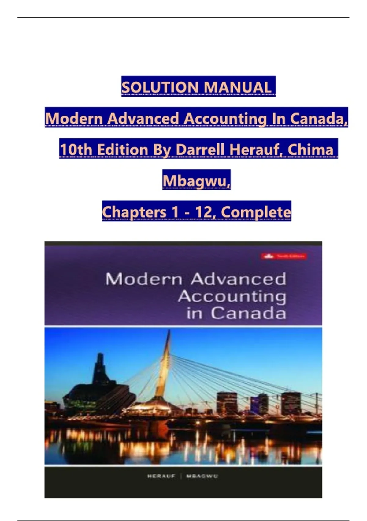 Test Bank for Modern Advanced Accounting in Canada 10th Edition By ISBN:9781259654695 Chapters 1 - 12, Complete