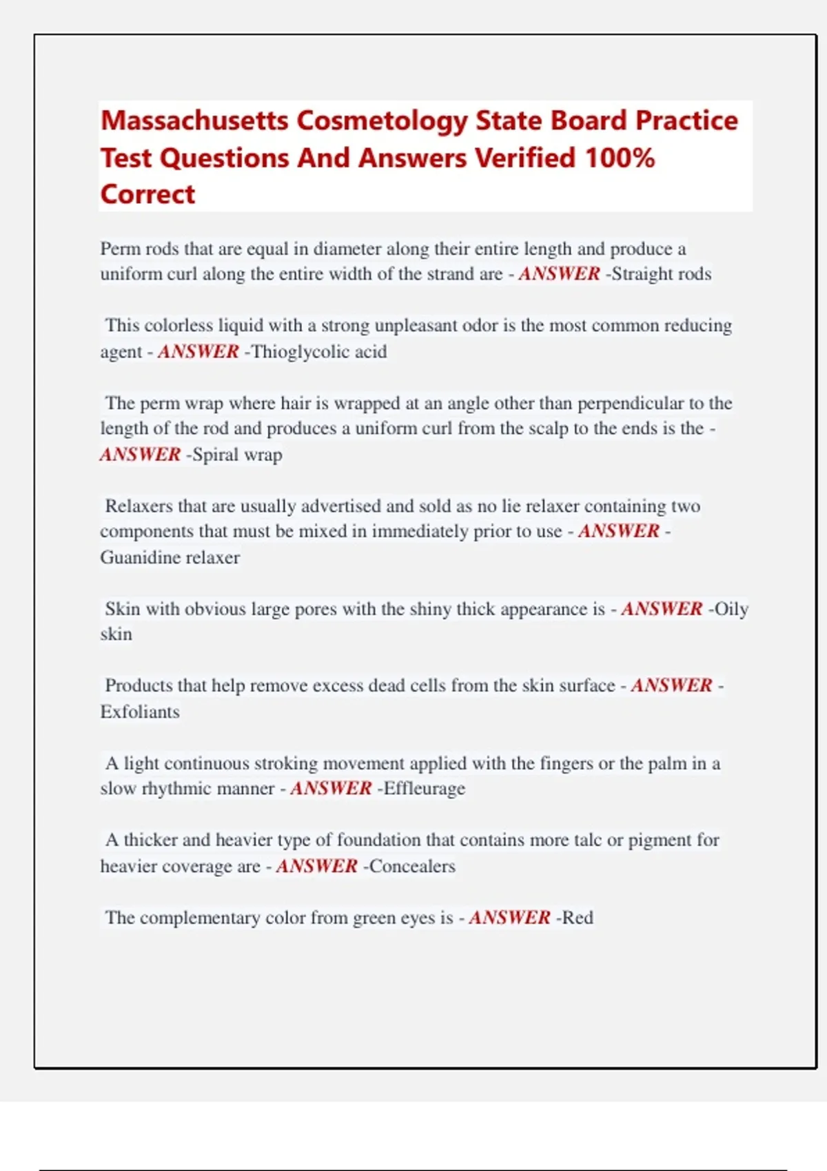 uniform curl along the entire width of the strand are - ANSWER -Straight rods