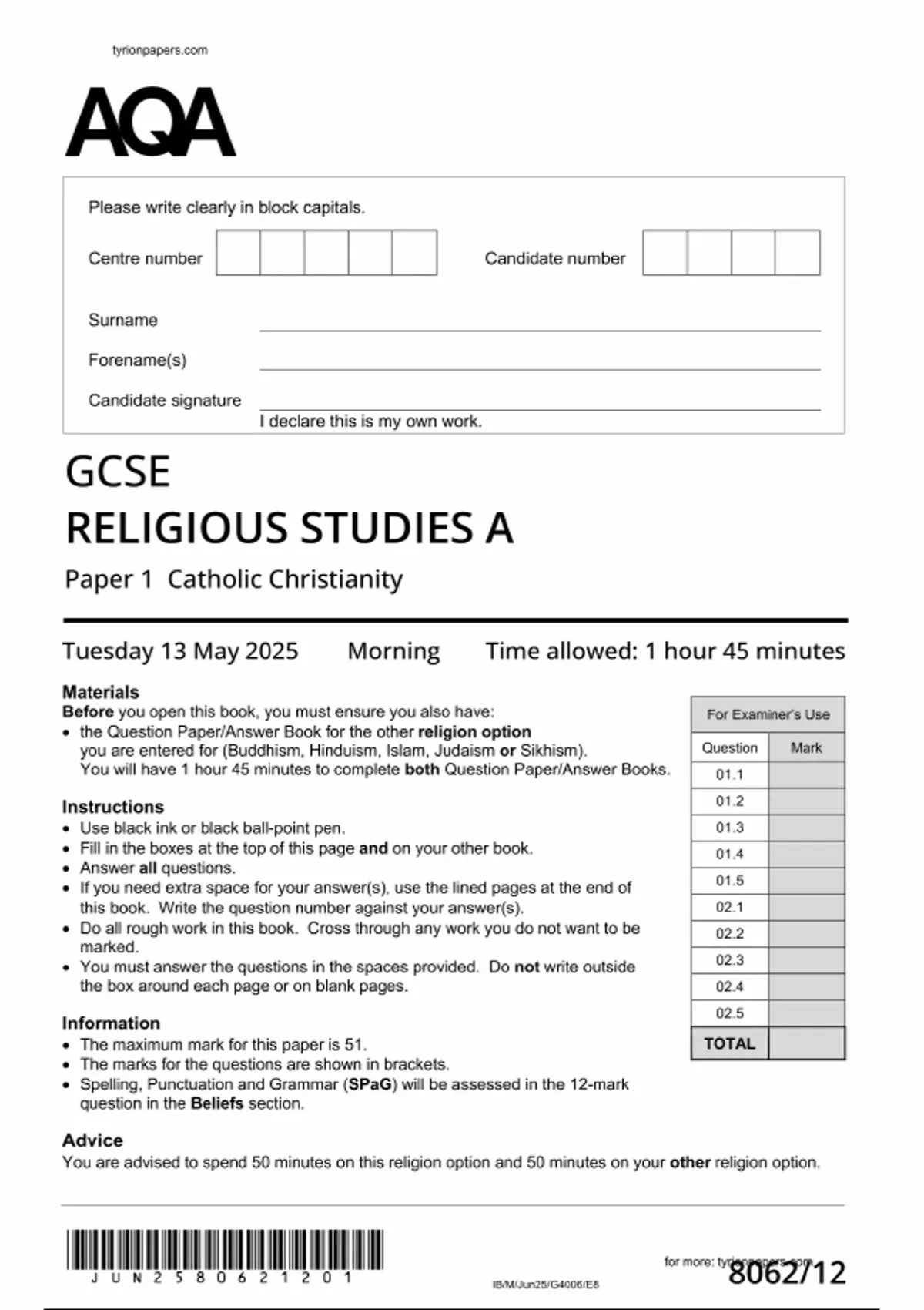 - 2025 AQA GCSE RELIGIOUS STUDIES A Paper 1
